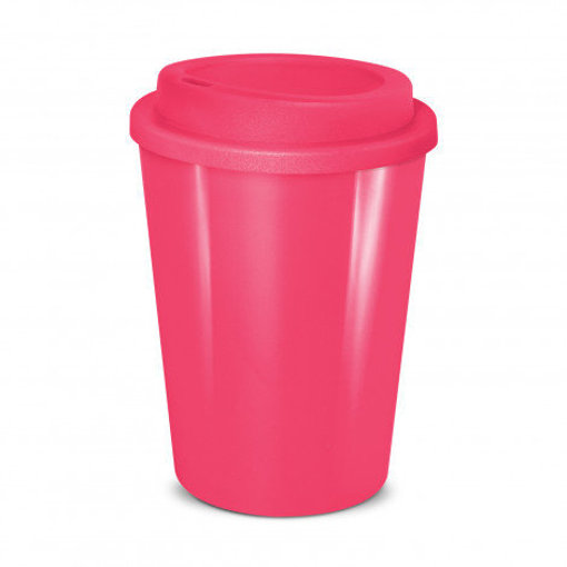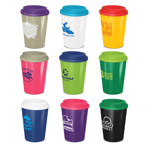 350ml double wall reusable coffee cup with a secure screw on lid which will keep drinks hot for longer and remain comfortable to hold. It is manufactured from polypropylene which is shatterproof, odour-resistant and BPA-free. The cup and lid can be mixed and matched in any colour combination from the colour palette at no extra cost. Up to five different colour combinations are included in the price and more are available for an additional charge. An optional black gift box is available on request. This product is not dishwasher safe and handwashing is recommended.