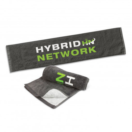 Absorbent 100cm x 30cm white sports towel which is manufactured from 350gsm cotton terry towelling. It can be branded on one side with a stunning edge-to-edge reactive print which produces a vibrant dye-like finish that is colourfast. A production lead time of 20 working days applies to this product by air freight and larger orders can be sea freighted on request to reduce the freight cost.