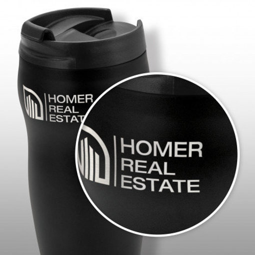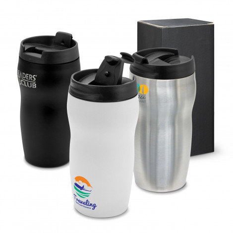 Premium 300ml double wall, vacuum insulated stainless steel coffee cup which will keep drinks hot for hours. It has a stunning contoured design that makes it incredibly comfortable and easy to hold. Mocka has a secure screw on lid with a splashproof flip closure and a soft non-marking base. The black and white cups laser engrave to a shiny steel finish and the silver cups engrave to a natural etch. It is BPA-free and is presented in a black gift box. This product is not dishwasher safe and handwashing is recommended.